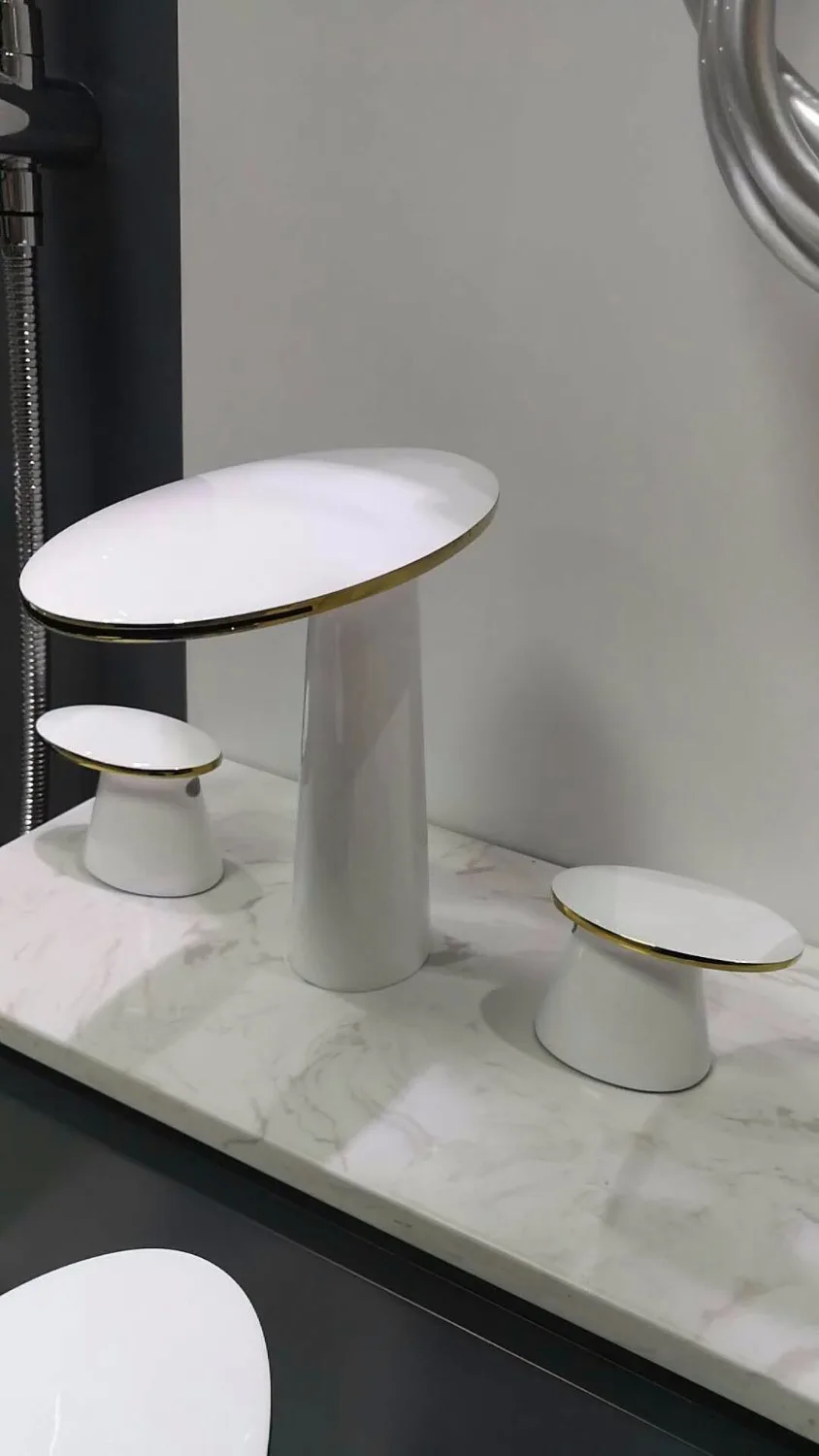 Product Name: 3 Holes Widespread 8" Oval Handles Bathroom Waterfall Lavatory Sink Faucet Mixer Tap Deck Mounted Gold White Color